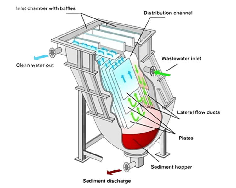 Lamella Clarifier dalam pengolahan air limbah adalah sebagai alat untuk memisahkan partikel yang tercampur di dalam air. Selain itu, sistem ini juga digunakan untuk menjernihkan air baku dengan kualitas yang kurang baik, low water dan pengolahan primer untuk menggantikan tangki pengendapan atau sedimentasi konvensional. Oleh karena itu, keberadaan sistem pengolahan air limbah ini sangat penting untuk meningkatkan efisiensi dalam mengolah air limbah.