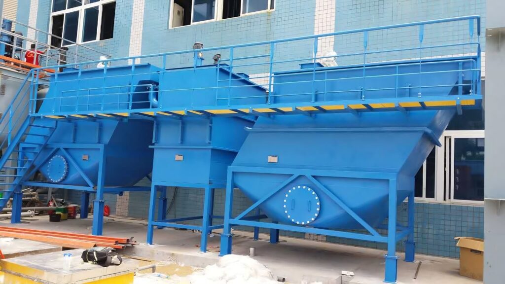 Unit Proses sedimentasi yang menggabungkan proses kimia (Koagulasi, Flokulasi) dan proses fisika (Sedimentasi) pada satu unit tangki. Clarifier berfungsi untuk mengurangi kandungan TSS dalam air. Clarifier ini dapat menghasilkan air dengan tingkat kejernihan yang tinggi pada Primary Treatment.