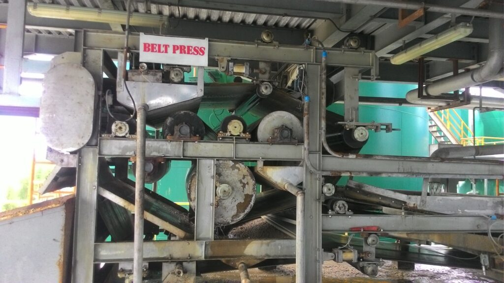 • Belt Press adalah alat untuk proses dewatering (pengurangan kadar air) lumpur pada instalasi pengolahan limbah. Lumpur dialirkan ke antara dua sabuk berpori yang bergerak dan ditekan secara bertahap, sehingga air terpisah dan tersisa lumpur padat (sludge cake).
